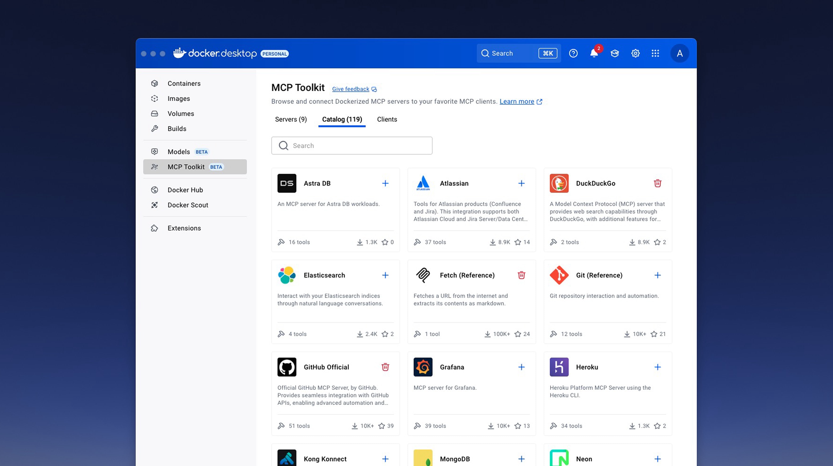A curated repository of verified MCP servers from enterprise partners like Stripe, Elastic, and Neo4j. These aren’t hobbyist projects—they’re enterprise-grade containers with publisher verification, versioned releases, and proper support channels.